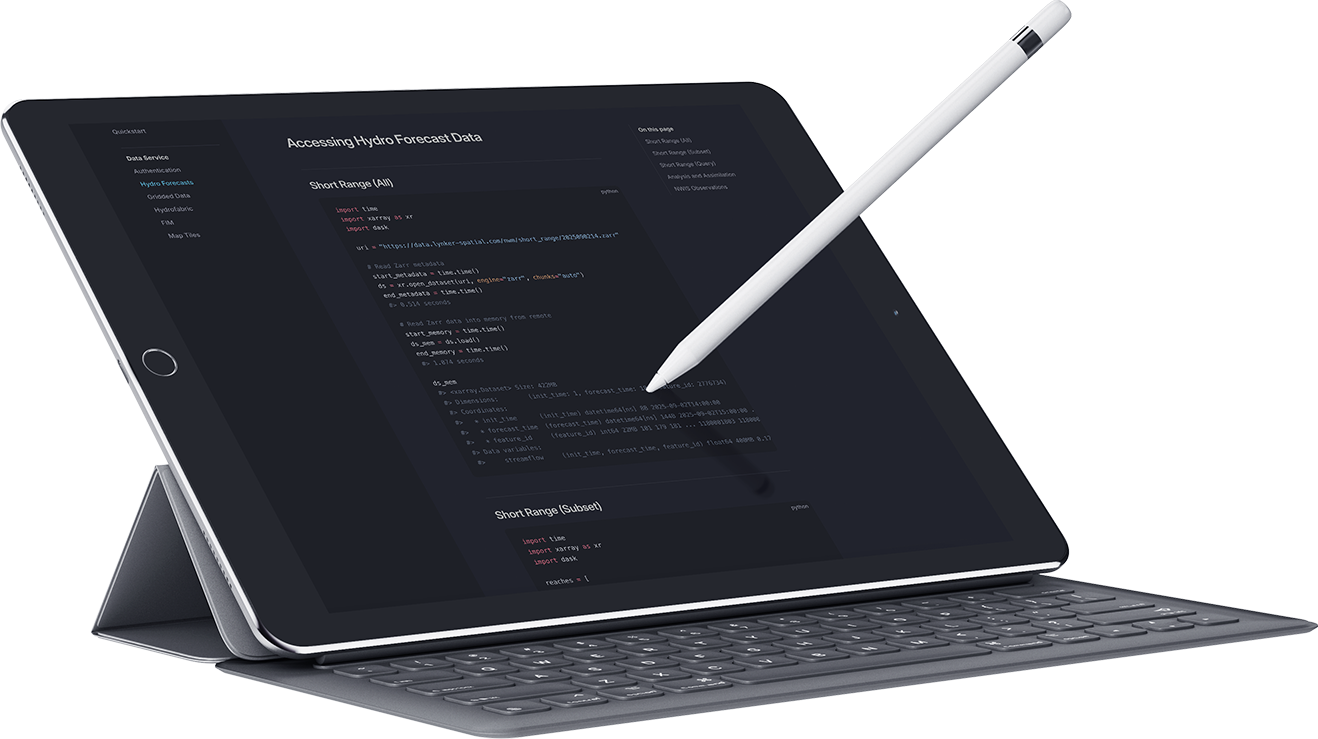 We host hydrology and landscape data in resilient, cloud-native formats designed for performance and scale. Our platform supports both open public data and tightly controlled, permissioned datasets, letting you decide who can access your information and how it’s shared.